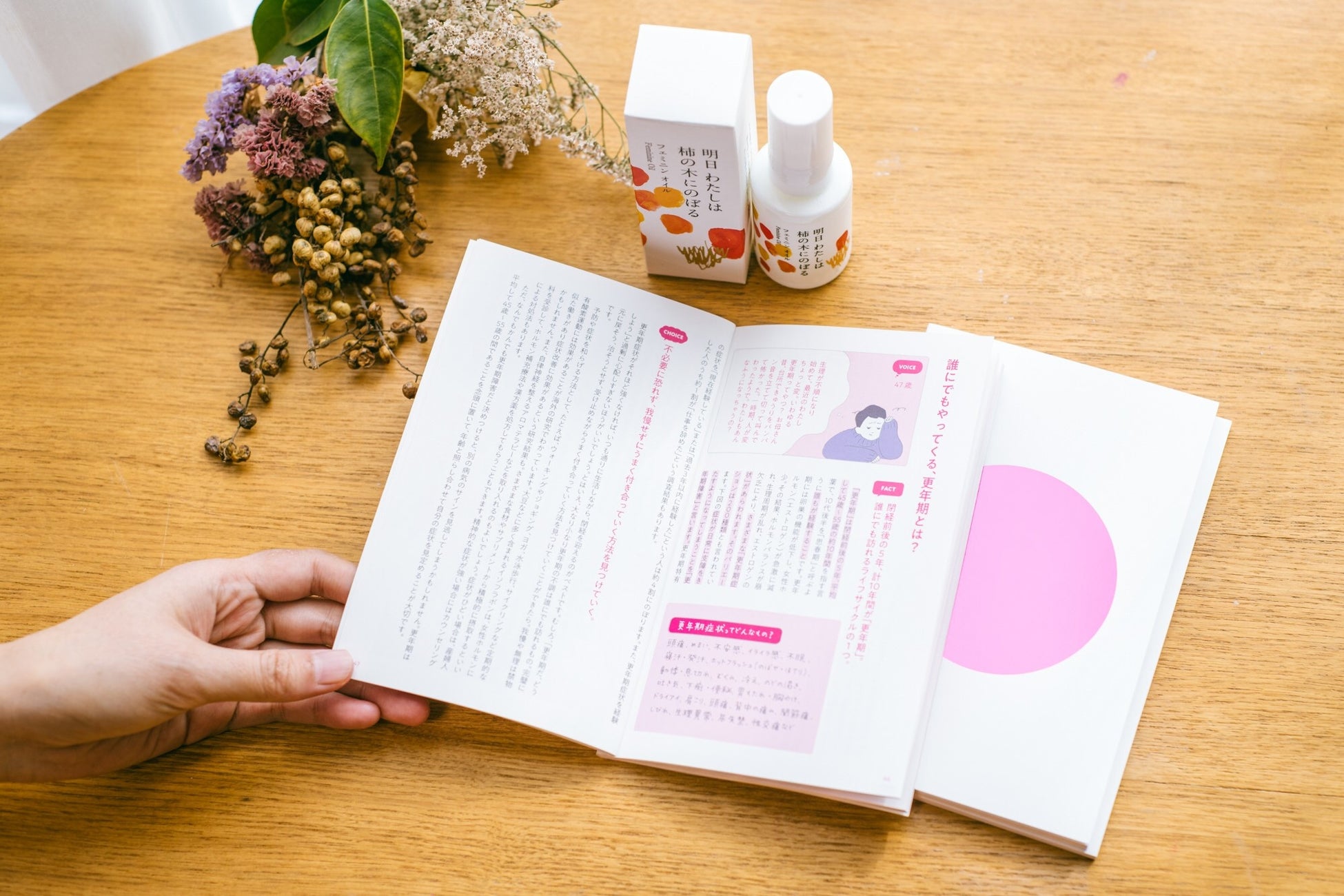 柿にまつわる古来の知恵に着目したフェミニンケアブランド『明日 わたしは柿の木にのぼる』からリリースされた『はたらく女性の心と身体FACT BOOK』を、期間中に『明日 わたしは柿の木にのぼる』製品を1点以上ご購入のお客さまにプレゼントいたします。
