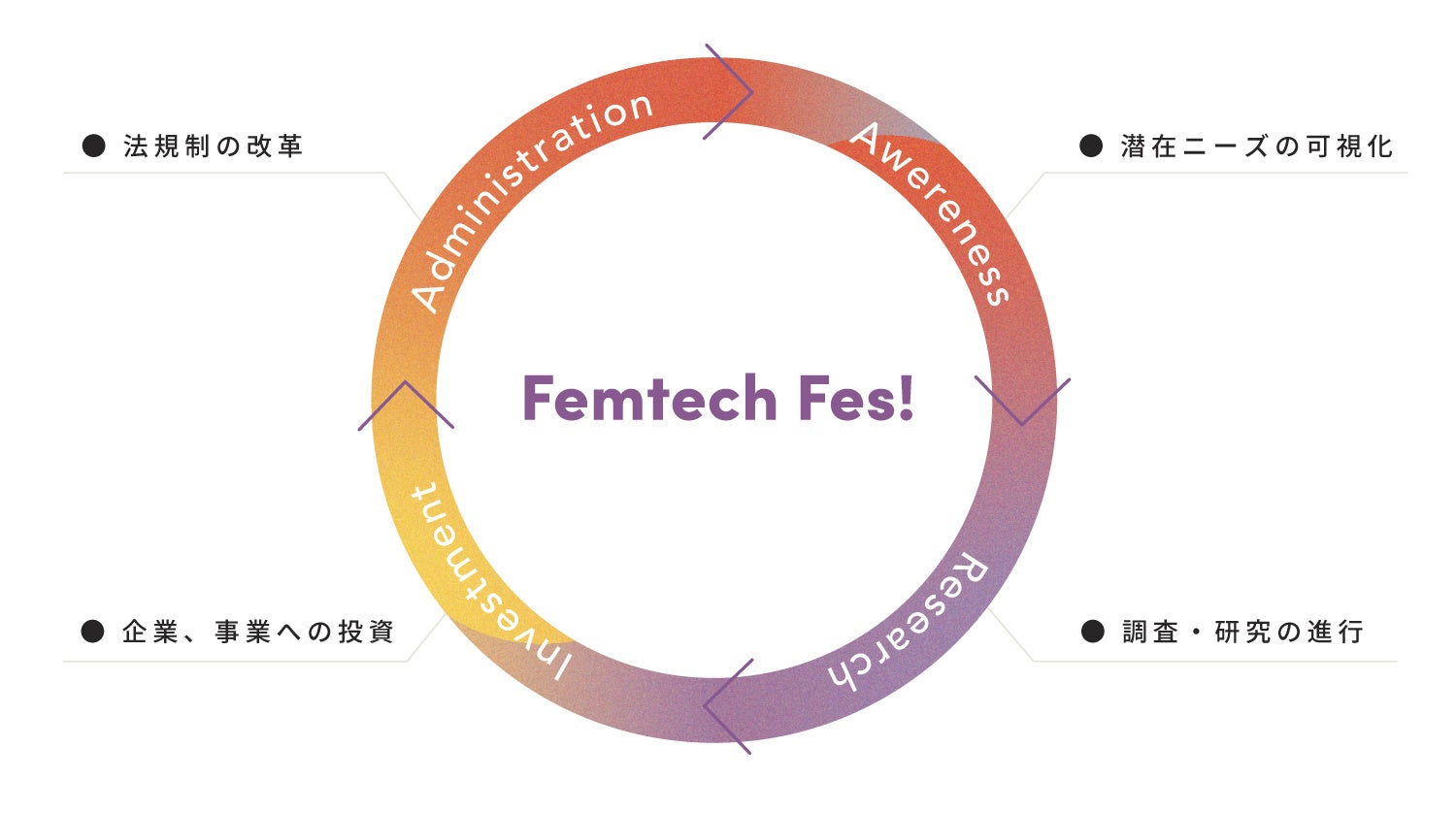 Femtech Fes! は、その好循環を生み出す一端を、来場者一人ひとりが担っているのだということを体感していただくための、またとない機会です。Femtech Fes! への参加を通じて、すべてのステークホルダーが、これまで”あたりまえ”だと思って見過ごしていた様々な事柄を見つめ直し、一歩を踏み出すきっかけを得ていただければと思います。